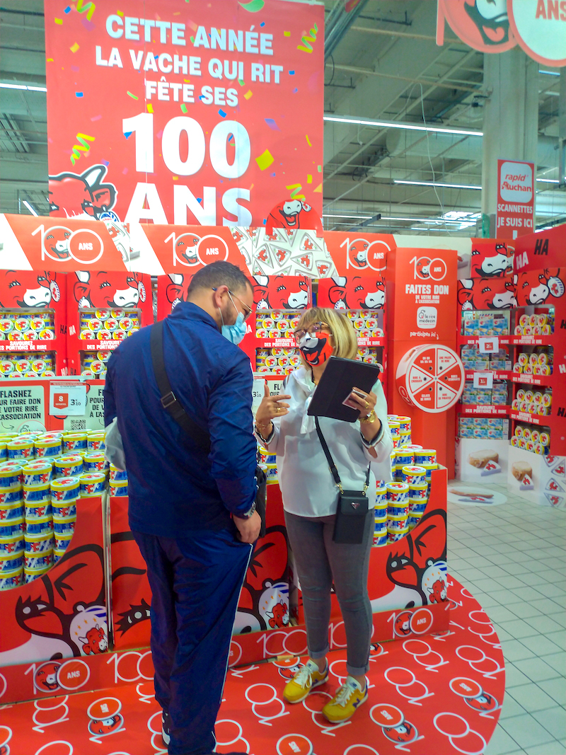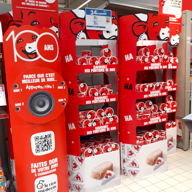 Pour cette activation, nous avons imaginé une mécanique de jeu solidaire inédite : le shopper peut enregistrer son rire sur une tablette ou un smartphone grâce à un QR code intégré dans les PLVs et connecté à la plateforme digitale du jeu. Son rire est ensuite converti en don et reversé à l’association le rire médecin, partenaire du groupe Bel.