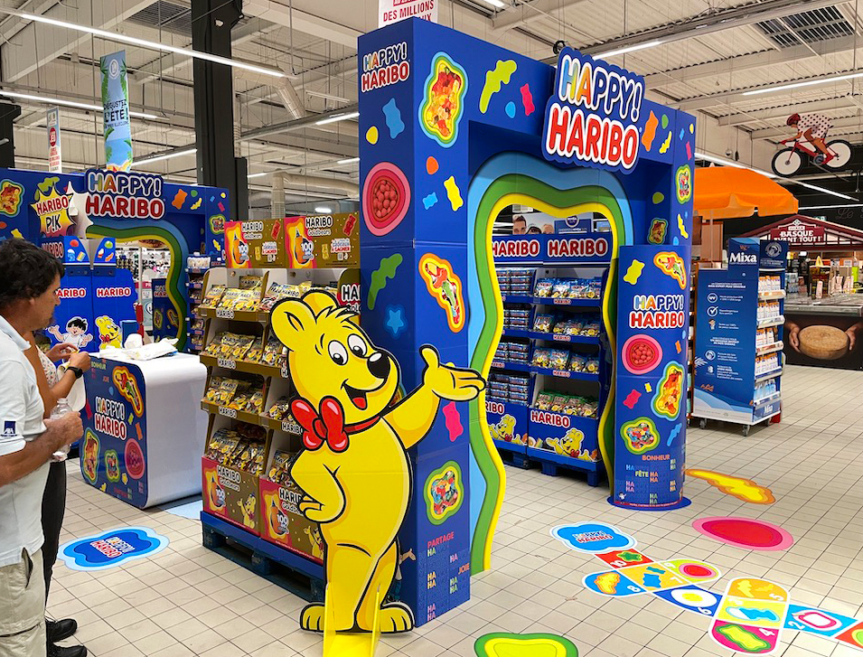 Dans certains points de vente, la mascotte Haribo vient compléter cet événement magasin pour le plus grand bonheur des petits et grands.