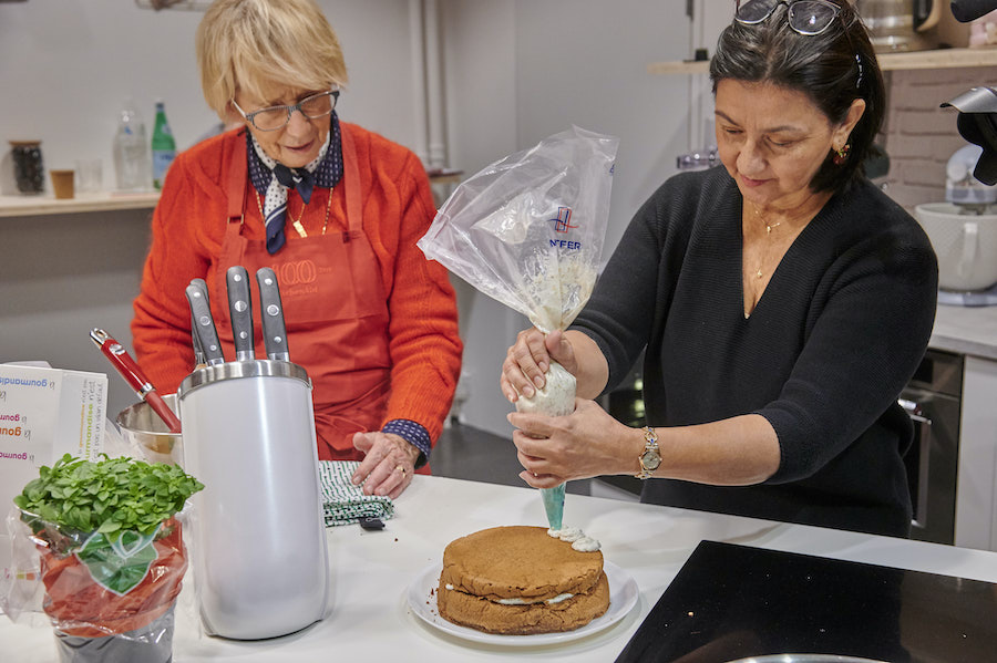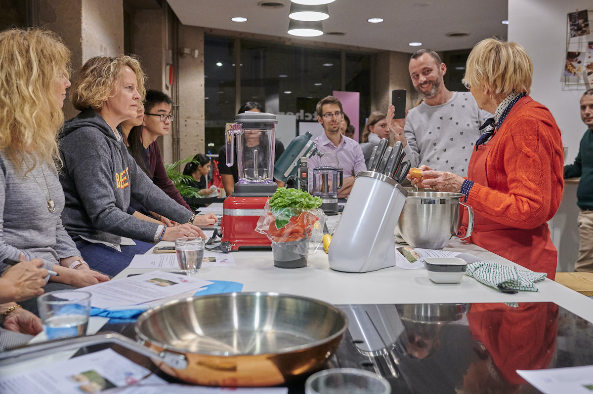 À l’étage de la boutique, une cuisine aménagée permet d’accueillir des ateliers de pâtisserie dispensés par des chefs reconnus à destination de visiteurs qui se sont inscris au préalable.